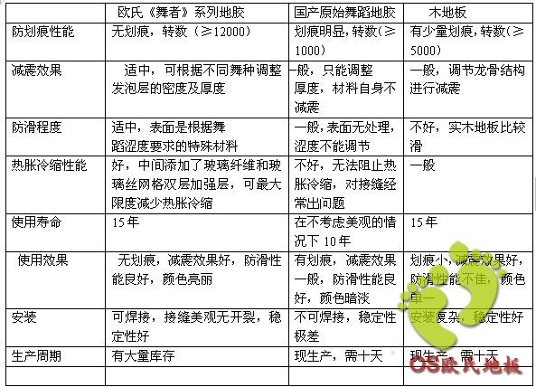 舞蹈地面材料主要性能對比